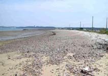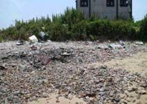 ◦ 해변 상단부에 폐타이어, 그물 등 각종 쓰레기 방치되어 있음 ◦ 쓰레기 소각이 빈번히 일어나는 곳으로 판단됨 ◦ 중국 기인 쓰레기(PET 병) 발견됨